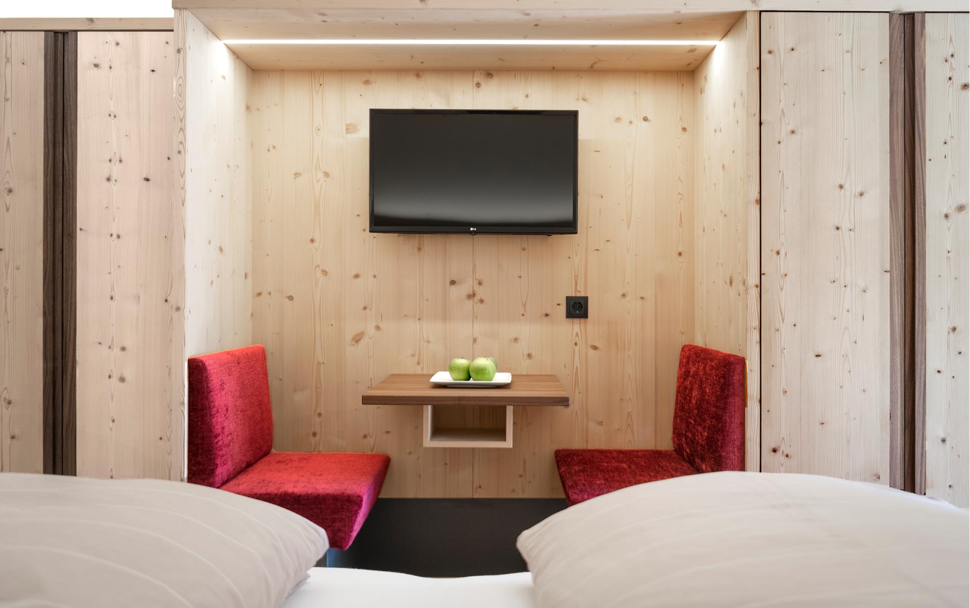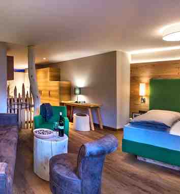 Da noi soggiorni in ampi studio, vale a dire comode suite arredate con amore nel minimo dettaglio. Questo è il nostro plus da sfruttare con i numerosi servizi dell’hotel: prima colazione, cena, wellness e assistenza qualificata per le attività all’aperto. Il nostro hotel a Tires al Catinaccio è appunto un paradiso!